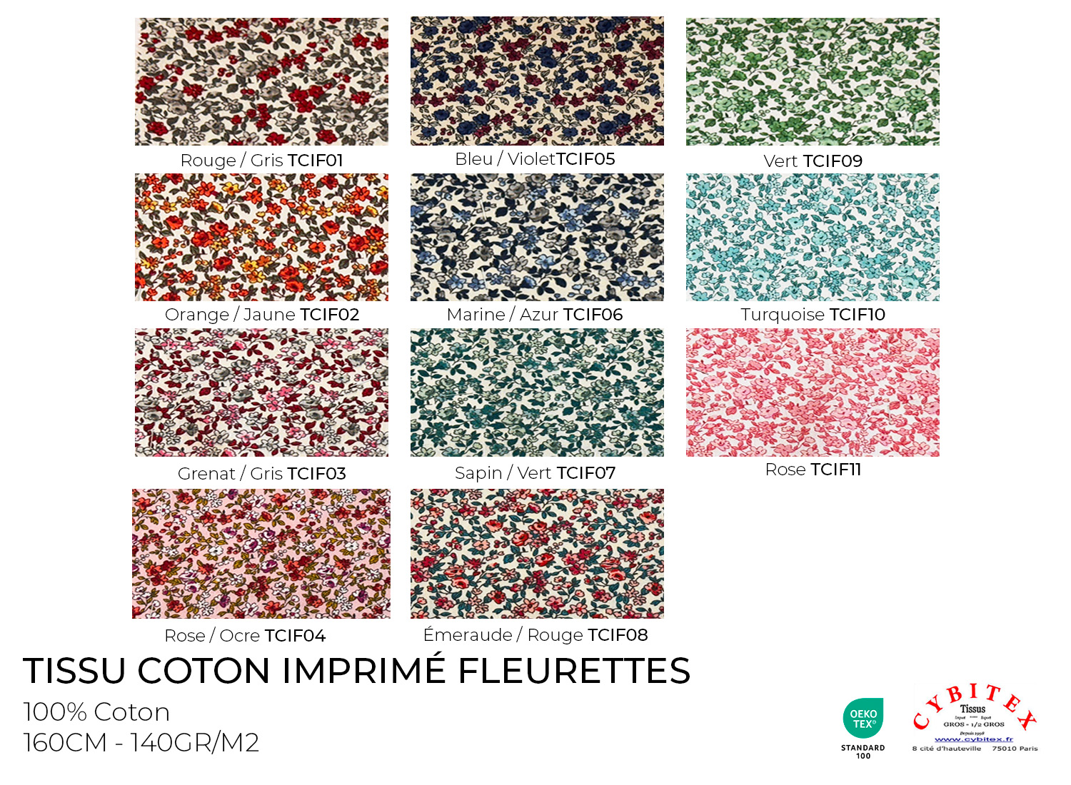 Récapitulatif Couleurs : Rouge / Gris TCIF01 Orange / Jaune TCIF02 Grenat / Gris TCIF03 Rose / Ocre TCIF04 Bleu Violet TCIF05 Marine / Azur TCIF06 Sapin / Vert TCIF07 Emeraude / Rouge TCIF08 Vert TCIF09 Turquoise TCIF10 Rose TCIF11