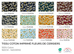 Notre coton imprimé petites fleurs est imprimé sur une cretonne en 160 cm.