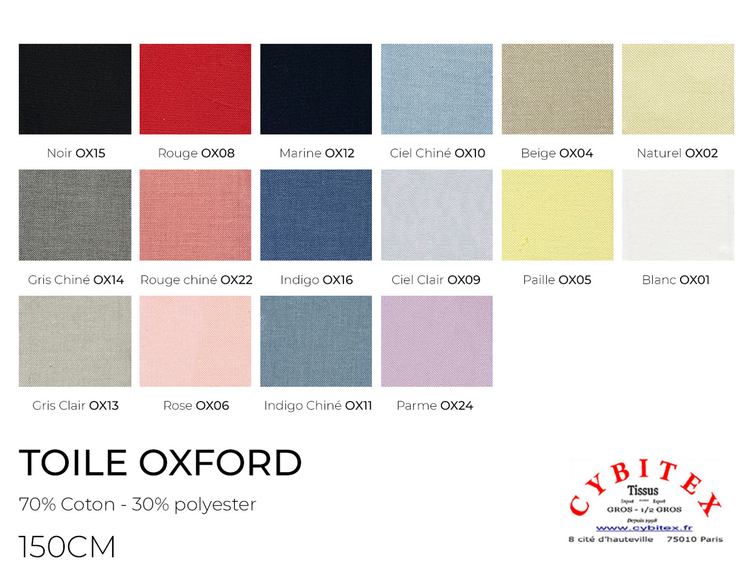 Notre tissu toile oxford est vendu avec un minimum d'achat de 50 mètres au coloris, le tarif indiqué est un prix au mètre hors taxe.