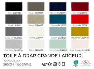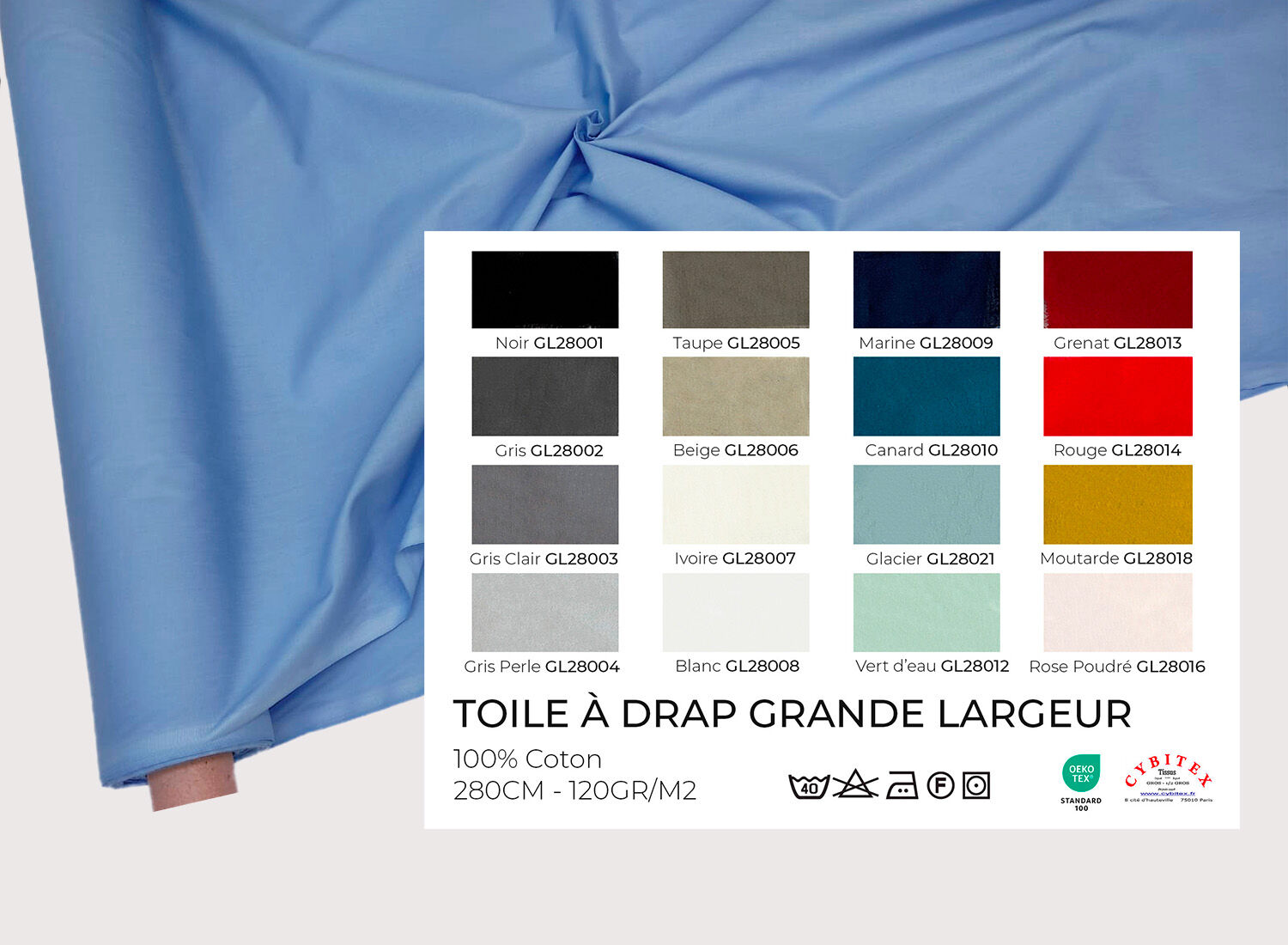 Notre tissu toile à drap grande largeur 280 cm est vendu par rouleaux de 20 mètres pour les coloris.