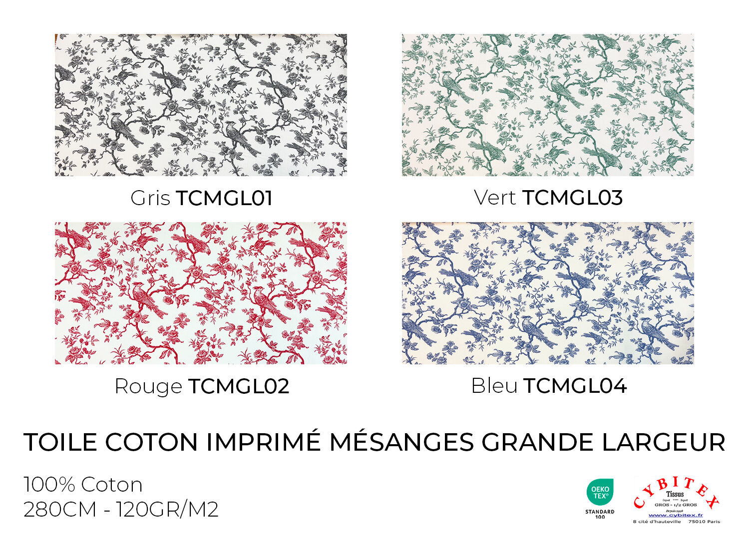 Découvrez notre tissu Toile de Jouy grande largeur 280 cm, un incontournable pour les professionnels recherchant un tissu d’ameublement imprimé élégant et rentable. Ce tissu toile imprimée mésanges et branches fleuries combine esthétique traditionnelle et performance technique, idéal pour tous vos projets de décoration textile.